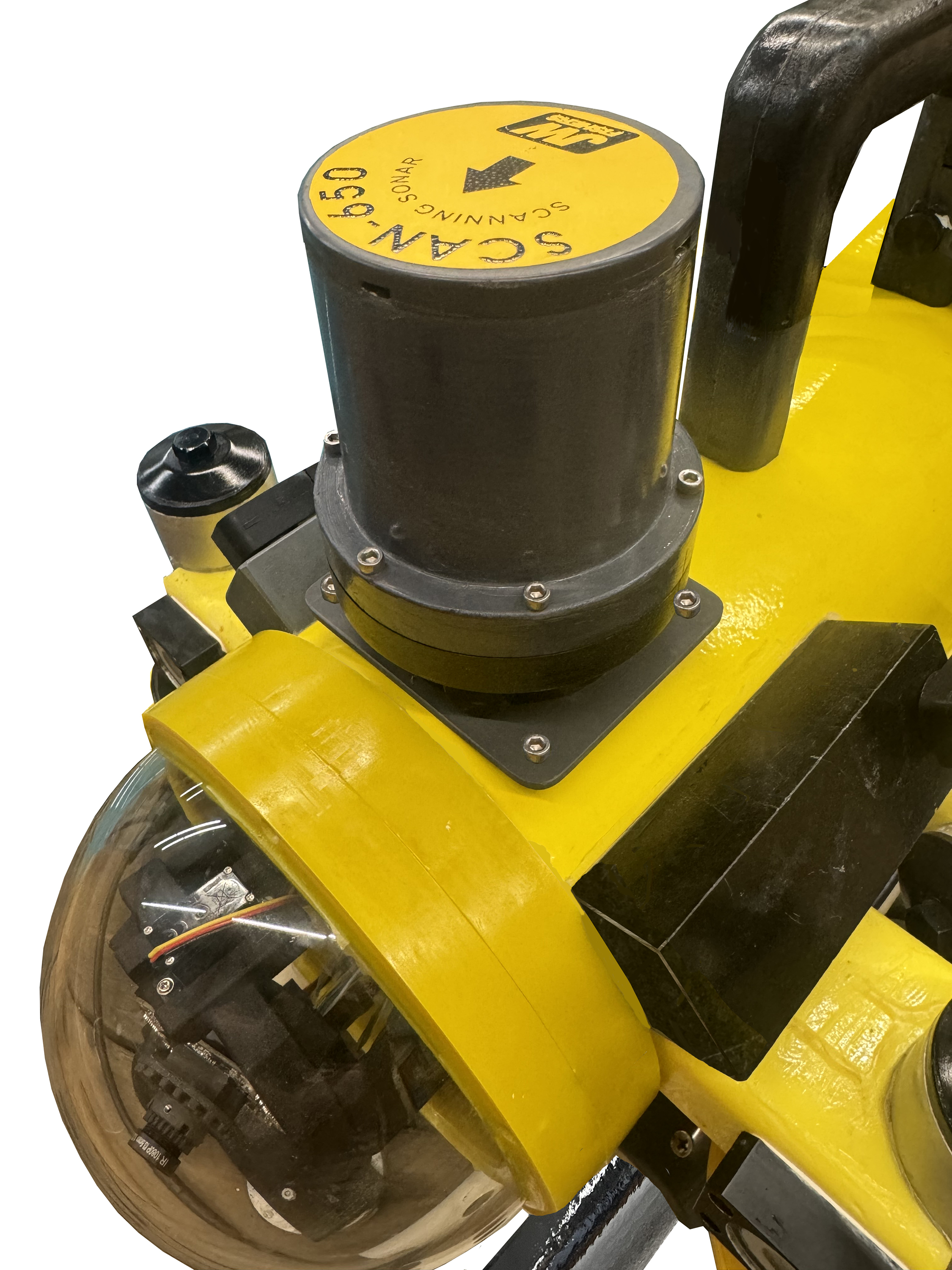 In a typical ROV application, the sonar head or transducer is mounted on top of an ROV. The head scans a circle around the ROV and "sees" targets in all directions, including those well beyond camera range. The sonar images are displayed on the topside computer. Using the sonar for direction bearings, the operator drives the ROV to the various targets for identification and videotaping.